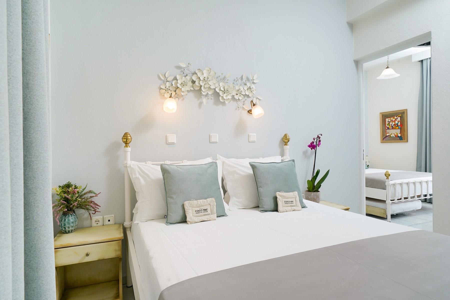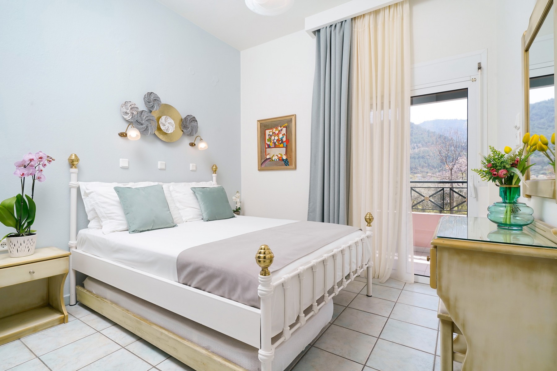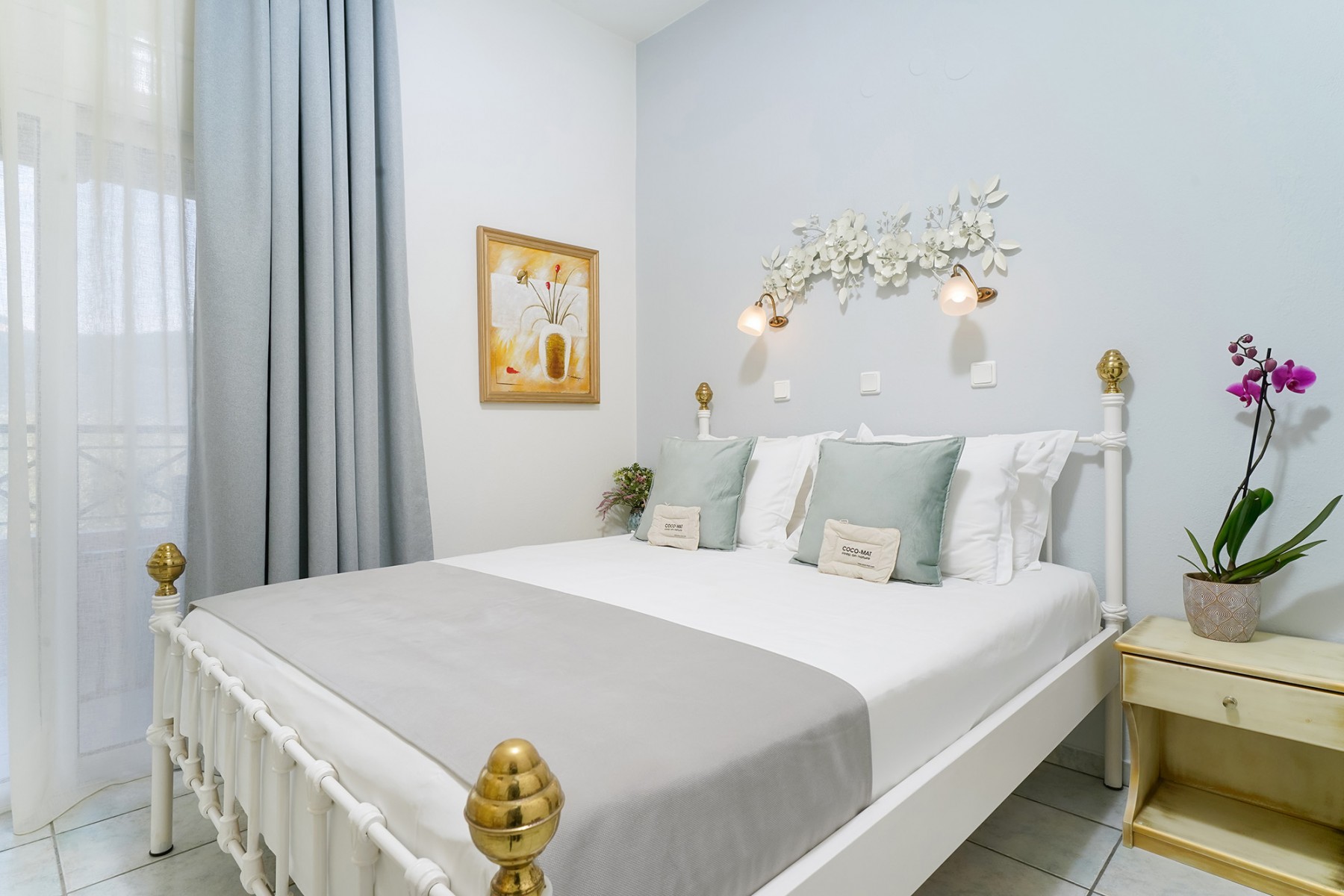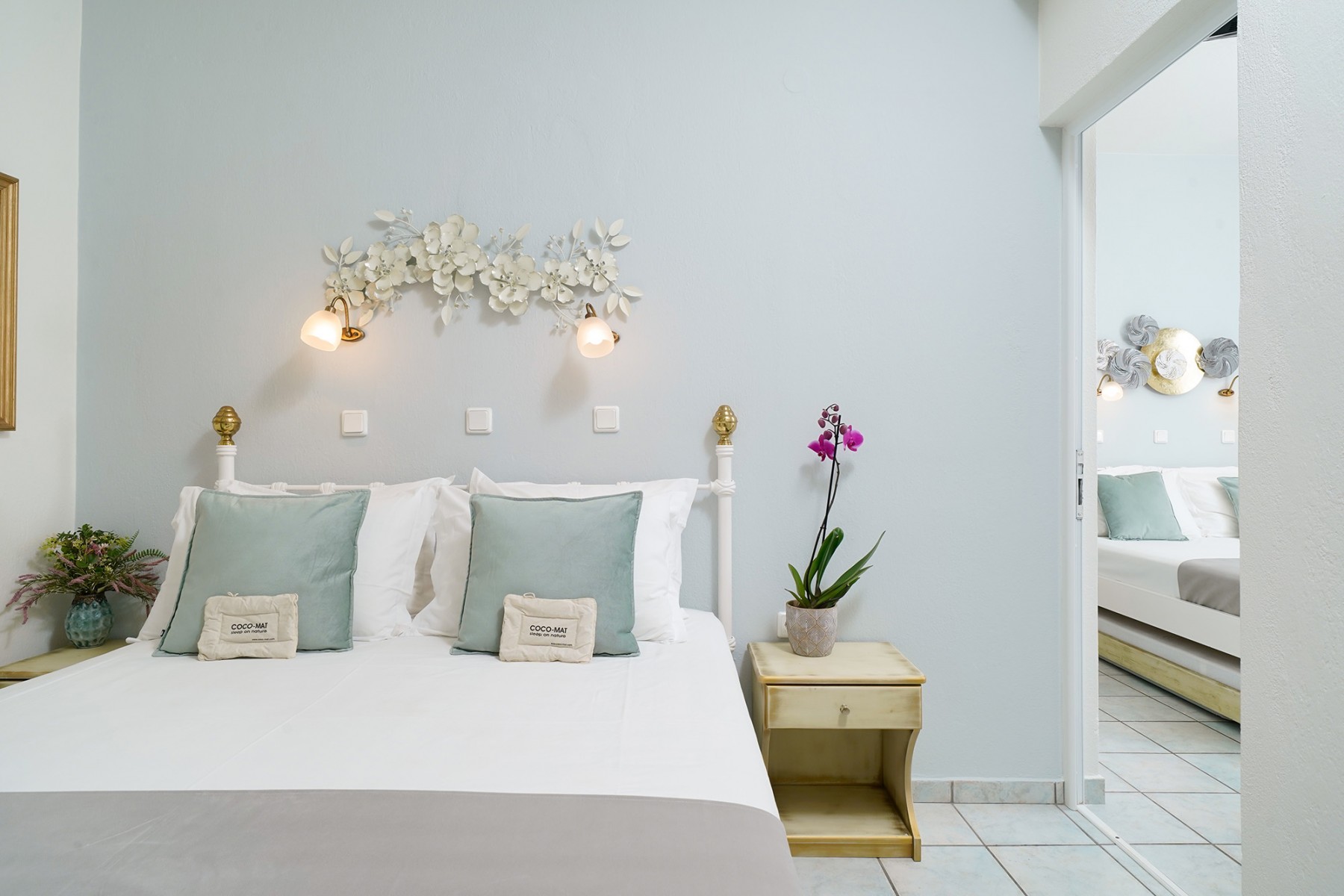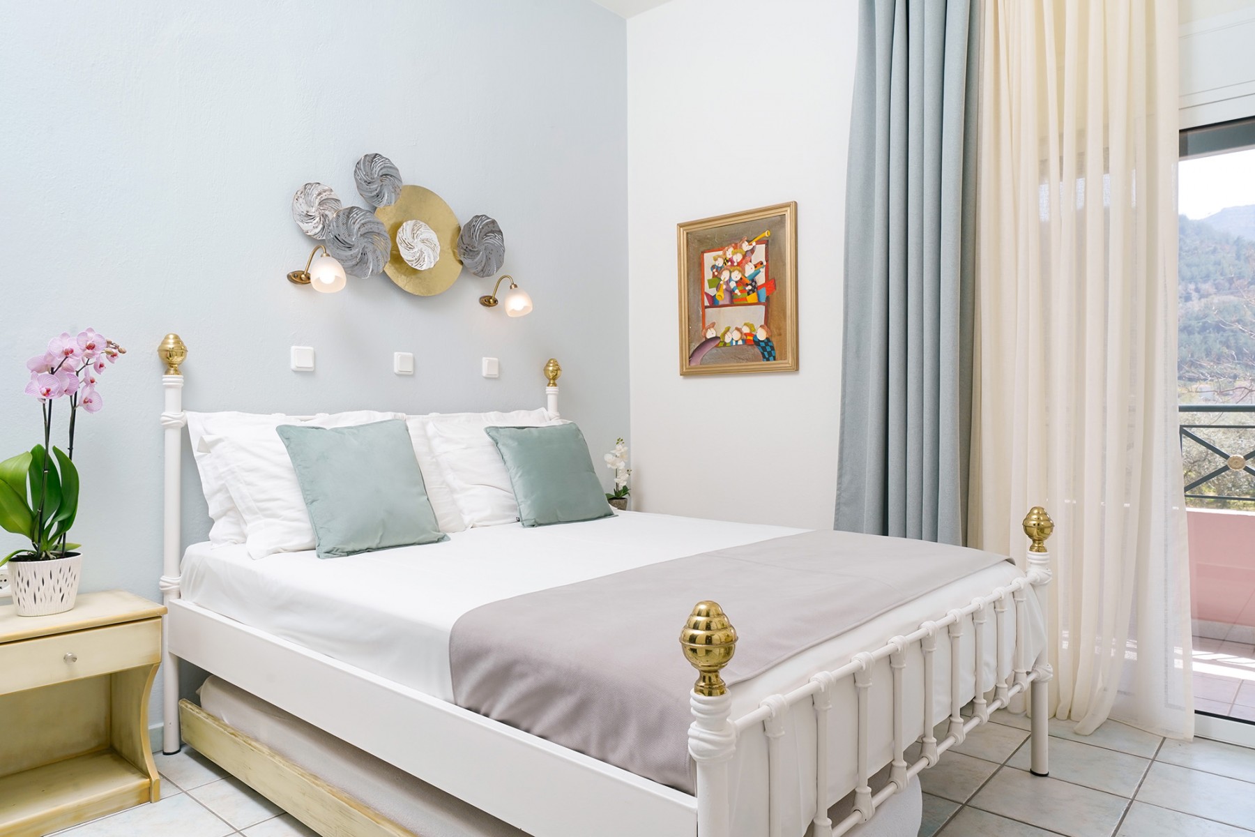 These apartments have two spacious rooms, the first room has the kitchenette, wardrobe, dressing table and a double bed. The second room also has a double bed, wardrobes and dressing table and from here you will find the separate bathroom with shower, wc and hand basin. Both rooms have patio doors onto the furnished balcony.