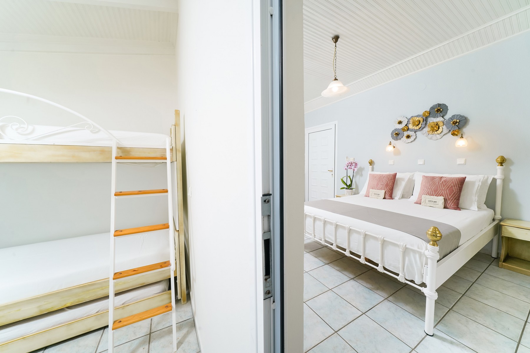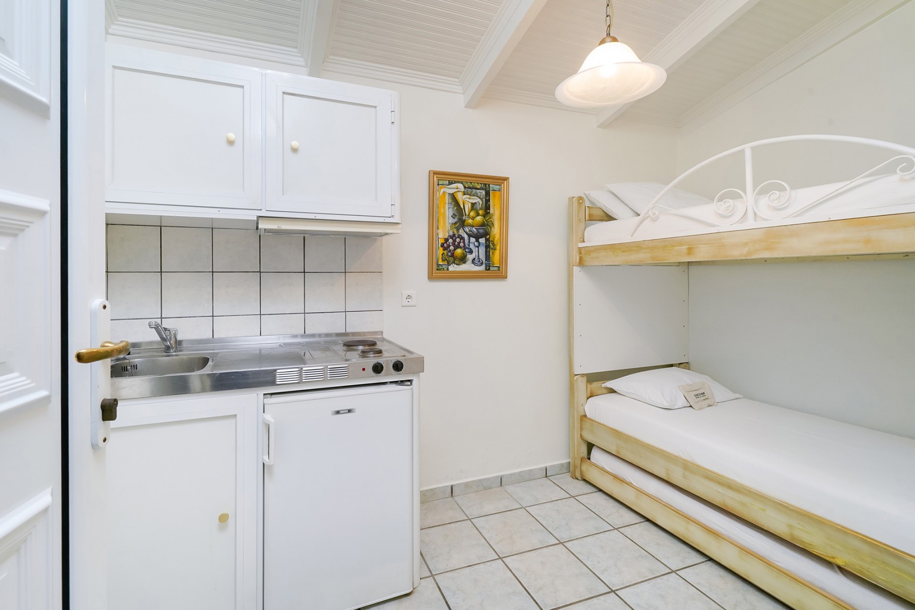 These apartments also have two rooms, the only difference from the Type 1 apartments is that instead of a double bed, the second room has bunk beds and a single bed. They too have a kitchenettes and a separate bathroom.